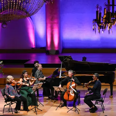 Runter vom Podest, ran den Flügel: Star-Dirigent Yannick Nézet-Séguin lässt es sich bei den Sommerfestspielen nicht nehmen, im Kreis seiner Freunde in die Tasten zu greifen und einfach gemeinsam Musik zu machen. Aber was heißt hier einfach? Die ausgewählten Stücke sind hochkarätig und fordern dem Pianisten Nézet-Séguin einiges an Virtuosität abTrotzdem: Die Freude, die alle dabei haben, springt zuverlässig aufs Publikum über. Und nicht selten bleibt Raum für spontane Einlagen und aus der Laune geborene Überraschungen