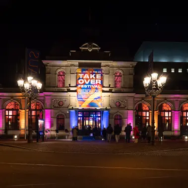 Eröffnungsshow mit Pop-Up-ChorVielstimmig für gute Stimmung: Das Takeover Festival 2026 eröffnet mit einem Pop-Up-Chor. Was gesungen wird? Lasst euch überraschen! Stimmlich geführt und angeleitet werden die Sängerinnen und Sänger von Gesangssolistinnen und -solisten des Bundesjazzorchesters. Die nehmen sich Zeit für ein Stimmtraining, das locker macht für die Show und Tipps gibt für grooviges Singen. Ihr möchtet mitmachen, allein oder mit eurem Chor? Meldet euch an und werdet Teil der Takeover Voices. Oder kommt einfach zum Zuschauen vorbei auf dem Platz vorm Festspielhaus, wenn das schönste Festival des Winters in die nächste, bunte Runde geht.