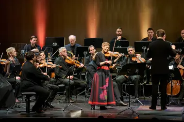 Und mitten darin Isabelle Faust - sie integrierte sich zunächst ganz in diese feinen Linien des Orchesters. Fausts Ton war von filigraner Innigkeit und doch von innerer Kraft – einer Kraft, die nicht aus Lautstärke geboren wurde, sondern aus konzentrierter Intensität. Sie dominierte das Geschehen nicht mit Macht oder auftrumpfender Brillanz, sondern durch Eleganz und seelische Tiefe. Alles geriet ihr scheinbar mühelos: Ihre sichtbare Spielfreude – ein stilles Lächeln hier, ein tänzerisches In-die-Saiten-Fallen dort – war ansteckend und rührend zugleich.