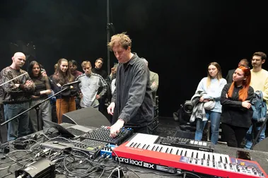 Der Tag begann mit Workshops: Kai Schumacher lädt zum Experimentieren am Klavier ein und Konstantin Gropper von Get Well Soon gibt Einblicke in die Welt der Filmmusik. Getanzt und gesungen wird beim Workshop mit Choreos bevor die Kompagnie Komoco die erste Vorstellung von "IMA" auf die Bühne bringt. In der Lounge überrascht Kai Schumacher vor dem Headliner mit zwei Pop-Up-Konzerten. Christian Löffler und das Detect Ensemble bringen das Haus zum Abschluss des Tages zum Tanzen.
