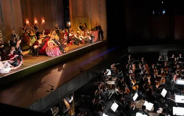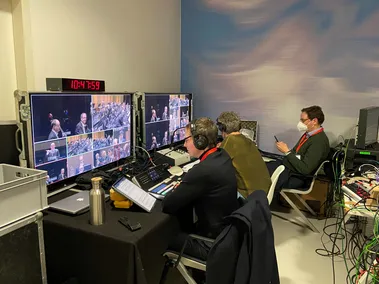 Dienstagabend, vor dem Festspielhaus Baden-Baden strömt es endlich wieder. Besucherinnen und Besucher sowie Musikerinnen und Musiker sind auf dem Weg in Deutschlands größtes Opernhaus. Die zweite Vorstellung der Neuinszenierung „Pique Dame“ beginnt bald, und wieder ist es eine kleine Premiere. Heute stehen die Kameras des Südwestrundfunks im Saal, um die Oper (auch am Karfreitag) aufzuzeichnen. Die TV-Regisseurin Nele Münchmeyer geht mit ihren Kamerleuten noch einmal die Szenen „trocken“ durch – sie hat vor der Monitor-Wand im Ü-Wagen Platz genommen und wird nun die nächsten drei Stunden den Solistinnen und Solisten, dem Chor und dem Orchester dezent mit Großaufnahmen und „Totalen“ folgen.