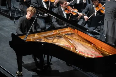 Die Berliner Philharmoniker gaben am Sonntag unter Dirigent Tugan Sokhiev das erste Sinfoniekonzert der Osterfestspiele 2024. Gemeinsam mit Jan Lisiecki am Klavier spielten sie Beethovens Klavierkonzert Nr. 3 und Bruckners 7. Sinfonie.