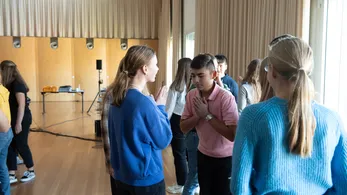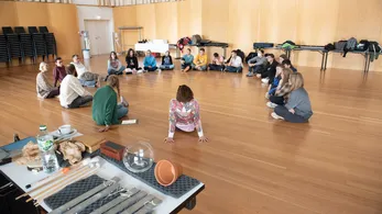 Wie bereits einen Monat zuvor, durchliefen auch die Schülerinnen und Schüler kleine Gruppenworkshops mit den einzelnen Künstlern, bevor sich die Gesamtgruppe von knapp 40 Personen kennenlernen durfte. Durch die Arbeit mit dem künstlerischen Team konnten die Schülerinnen und Schüler ein Gespür für die Gruppe entwickeln und sich nochmals in den künstlerischen Teilbereich ausprobieren.