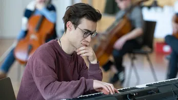 Ebenfalls in mehreren Welten zu Hause ist Daniel Mudrack. Jazz, Pop, Klassik und Elektronik weiß er flexibel zu verbinden. Mit Vanessa Porter arbeitet er bereits bei Konzertprogrammen zusammen. Außerdem ist Daniel als Produzent tätig und hat seit 2020 sein eigenes Studio.