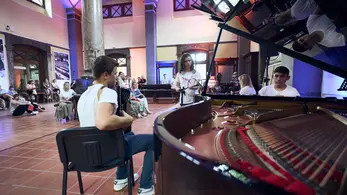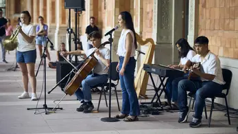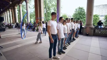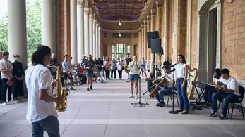 Die Gruppe aus Schülerinnen und Schülern sowie Künstlerinnen und Künstlern hat sich für eine Konzertinstallation entschieden. Was es genau damit auf sich hat, sehen wir am 18. Juni, 18 Uhr.
