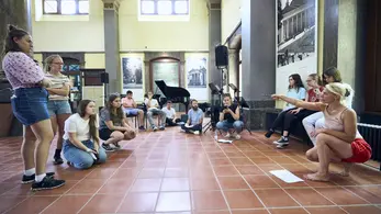 Nach vielen Impulsen und viel Ausprobieren, galt es, alle Programmpunkte vor Ort zusammenzusetzen. Dabei wurden letzte Details geklärt und nochmals wichtige Akzente gesetzt. Für viele der Schülerinnen und Schüler gab dies auch einen Einblick in die dramaturgische Arbeit des künstlerischen Teams.