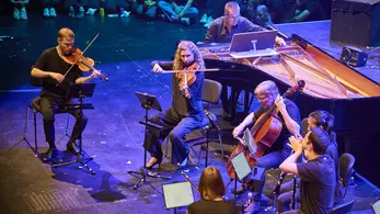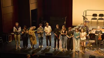 Ein ganzes Schuljahr lang standen acht Musikerinnen und Musiker von Ensemble Recherche, vier Komponistinnen und ein Komponist, neun Studierende der Hochschule für Musik Karlsruhe und das Team des Festspielhauses als Impulsgeberinnen und -geber hinter den insgesamt knapp hundert Schülerinnen und Schülern der diesjährigen Projektklassen.