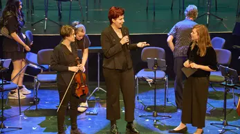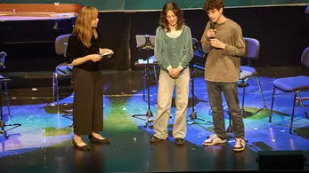 Über 400 Zuschauerinnen und Zuschauer – unter ihnen auch Ehrengäste wie beispielsweise der Bürgermeister der Stadt Baden-Baden, Roland Kaiser – lauschten am 24. Juli den Kompositionen der vier Projektklassen. Außerdem kamen die jungen Projektteilnehmerinnen und -teilnehmer von IM.PULS beim Abschlusskonzert nicht nur musikalisch zu Wort. Carolina Nees, Leiterin der Abteilung Partizipation am Festspielhaus Baden-Baden, führte als Moderatorin einfühlsam und charmant durch den Abend und bat zwischen den Auftritten der einzelnen Teams die Schüler, die Komponisten sowie die Musiker von Ensemble Recherche zu Interviews auf die Bühne.