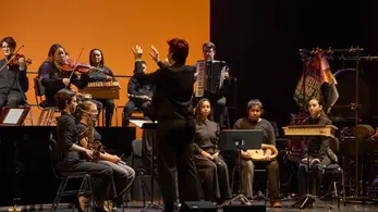Um den schelmischen „Mitmischer“ und mitreißenden Orchesterpädagogen gebührend zu feiern, reichte das Programm des Abends von Klavier- und Orchestermusik über Film-Ausschnitte und Live-Talk auf der Bühne.