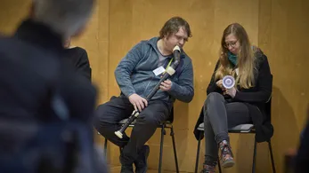 Nächste Runde bei IM.PULS: Nach zwei inspirierenden Impuls-Vorträgen der Professorin Cornelia Wild von der Hochschule für Musik Karlsruhe und dem Kompositionspädagogen Johannes Voit beschäftigten sich die Musikerinnen und Musiker von Ensemble Recherche, die diesjährigen Coaches sowie die Lehrkräfte der Projektklassen in verschiedenen praktischen Workshops mit Partizipation in der Musikvermittlung und dem Komponieren mit Schülerinnen und Schülern. Zum Auftakt des Musikvermittlungsprojekts im Festspielhaus waren also zunächst das Ensemble und die Lehrenden gefragt.
