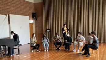 Wie der Name schon sagt, liegt die Klosterschule zum Heiligen Grab in den Gemäuern eines ehemaligen Klosters. Der Baden-Badener Leistungsfachkurs bekam Besuch aus dem Festspielhaus, um ein kleines internes Vorspiel abzuhalten. Hierbei wurde das bereits etablierte Ritual aufgegriffen und die Emotionen der jeweiligen Schülerinnen und Schüler vor und nach dem Vorspiel festgehalten. Anschließend wurde über Übungen und Kniffe diskutiert, wie man mit Lampenfieber umgehen kann. Diese sollen nun in kurzen Videosequenzen für nachfolgende IM.PULS-Jahrgänge festgehalten werden.