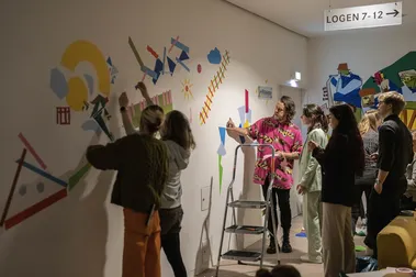Der erste Geburtstag will gefeiert werden. Und weil Kerzen auspusten auf dem Kuchen nun wirklich jeder kann, gab es für den jungen Kulturclub „Gleis1“ zum Einjährigen nicht weniger als die Eröffnung einer eigenen Lounge im Foyer des Festspielhauses. Auf der zweiten Ebene schmücken nun dauerhaft gemütliche Sitzgelegenheiten der Serie „freistil“ von Rolf Benz und ein Kunstwerk aus Klebeband den Bereich von Gleis 1. Das Wandbild ist von den Gleis1ern während des Takeover-Festivals in einem exklusiven Workshop mit dem Künstlerkollektiv Tape Over sogar selbst kreiert worden.