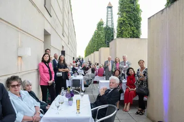 Die Förderer des Festspielhauses sind immer ganz nah dran. Bei den Sommerfestspielen konnten sie sich bei schönem Wetter auf einen Sekt mit Yannick Nézet-Séguin und Beatrice Rana treffen.