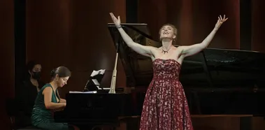 „Wir wollen spielen!“ Mit diesen Worten überbrachte Festspielhaus-Intendant Benedikt Stampa vor dem Silvesterkonzert die Nachricht des Tages: Aufgrund von Corona-Fällen im Orchester konnte die Deutsche Radiophilharmonie Saarbrücken-Kaiserslautern nicht anreisen. Die Retterinnen und Retter des Abends: Annette Dasch (Sopran), Klaus Florian Vogt (Tenor) und Daniel Schmutzhard (Bariton), die begleitet von Olga Wien am Klavier kurzerhand und äußerst erfolgreich zu einem eigenen Silvester-Spaziergang zwischen Oper und Operette aufbrachen.