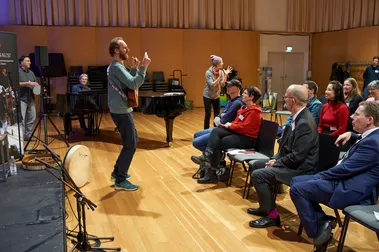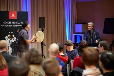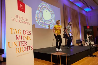 Nach der Talkrunde mit Dr. Schneider, Achim Fessler vom Regierungspräsidium Karlsruhe und Dr. Dany Weyer vom Festspielhaus Baden-Baden beendete ein letzter Musikbeitrag der Dozenten, in den auch die Teilnehmenden mit Improvisationen miteinbezogen wurden, den „Tag des Musikunterrichts“.
