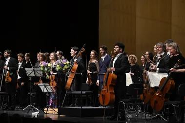 Mit einer besonderen Überraschung verabschiedete sich die Nationalphilharmonie aus Amsterdam, nämlich als singendes Orchester und bewies mit Mozarts Ave verum auch seine Qualitäten als Vokalensemble: vierstimmig und lediglich begleitet von einem Doppel-Streichquartett.