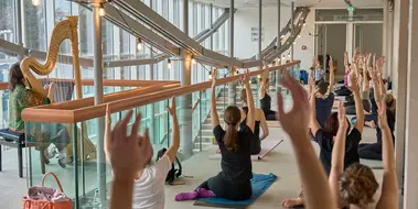 Klang trifft Körper: Zu den Anleitungen der erfahrenen Pilates-Lehrerinnen Erica und Nurcan begleitet Teresa Emilia Raff live an der Harfe. Die sanften Klänge unterstützen Atmung, Konzentration und Bewegungsfluss – für ein ganzheitliches Training zwischen Spannung und Entspannung.